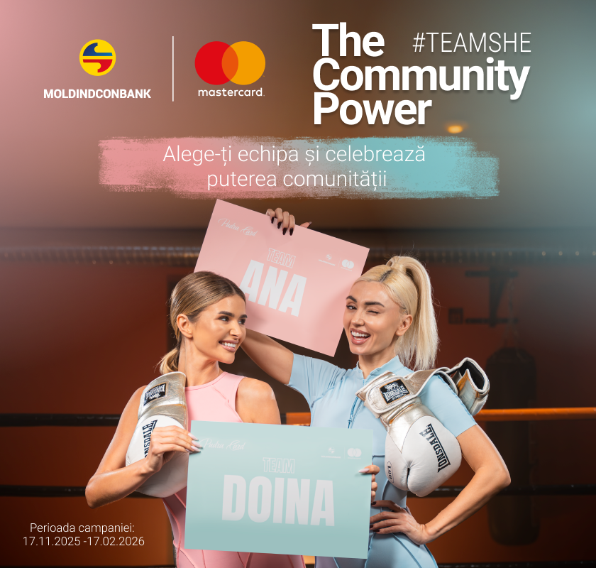 Moldindconbank, în parteneriat cu Mastercard, aduce o experiență memorabilă pentru toate cliente sale prin promoția „#TeamShe – The Community Power” – o inițiativă menită să inspire, să conecteze și să creeze momente de neuitat alături de comunitatea femeilor puternice.