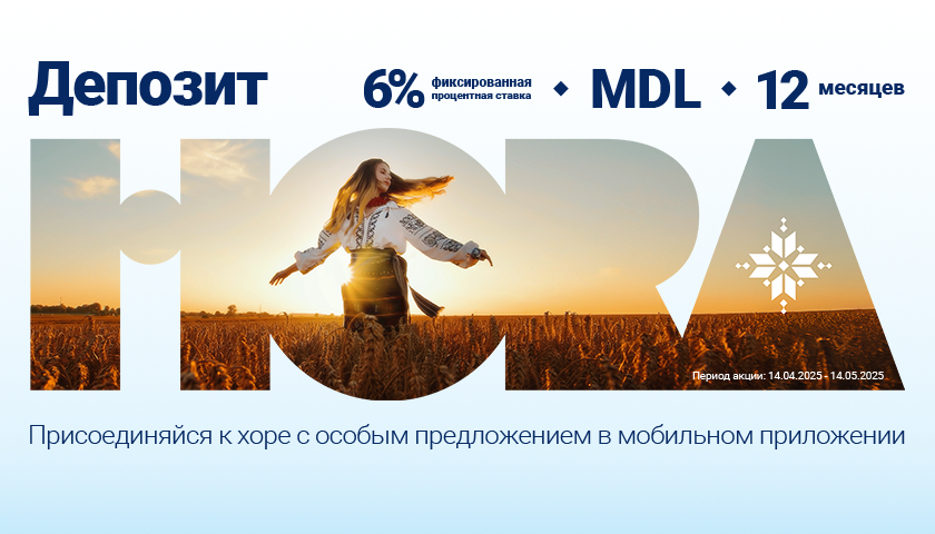 Новый депозит можно открыть в молдавских леях, с фиксированной процентной ставкой 6% и максимальным сроком 12 месяцев. Предложение доступно исключительно в приложении MICB Mobile Banking с 14 апреля по 31 мая 2025 года.