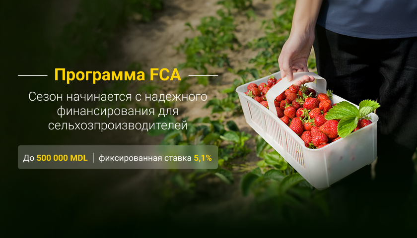Moldindconbank предоставляет фермерам чёткое и прозрачное решение финансирования текущих расходов через программу „FCA – Сельскохозяйственное кредитование”. Это инструмент, созданный для ситуаций, когда работы должны выполняться вовремя, а финансовые ресурсы имеют решающее значение.